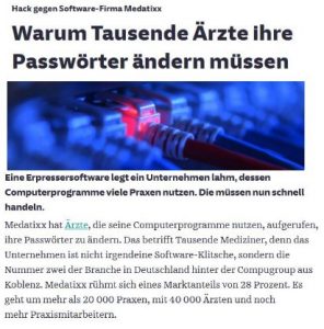 Ab 1.1.2021 müssen die gesetzlichen Krankenkassen ihren Versicherten eine elektronische Patientenakte anbieten, deren Daten dann zentral auf Servern gespeichert werden sollen. Jetzt schon sind Ärzte und Psychotherapeuten gezwungen, die dafür notwendige Technik, die Telematikinfrastruktur, zu installieren, ansonsten wird ihnen derzeit bereits 1% Honorar abgezogen, ab März 2,5%.