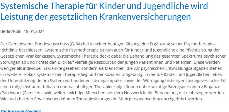 So wird Timo Harfst von der Bundespsychotherapeutenkammer (BPtK), die im G-BA Anhörungsrecht hat, im Deutschen Ärzteblatt vom 16.06.16 zitiert.