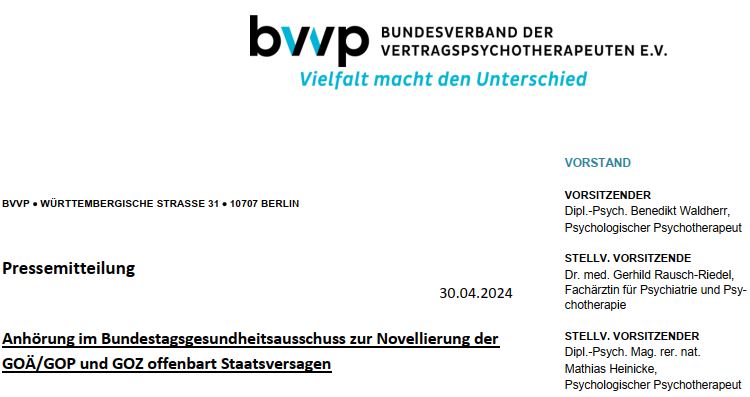 Krankenkassen lenken ein – Gemeinsame Pressemitteilung bvvp, DPtV, VAKJP