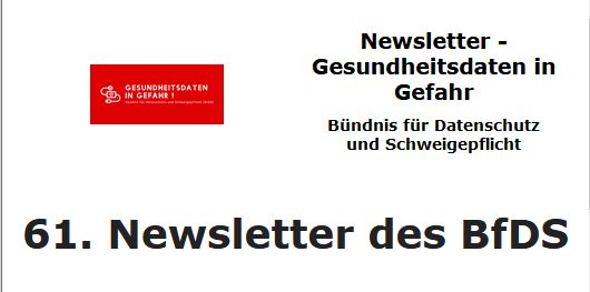 Das Bündnis für Datenschutz und Schweigepflicht, eine Initiative von oberbayerischen Ärzten und Psychotherapeuten, die bundesweit eng mit anderen Ärzte-, Psychotherapeuten- und Datenschützerverbänden kooperiert, wendet sich gegen diese Regelungen und fordert Freiwilligkeit auch für die Behandler bei Nutzung dieser Patientenakte. (…)