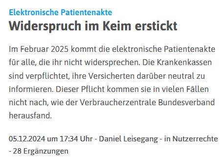 Infos zur Elektronischen Patientenakte auch hier und hier (interne Links)