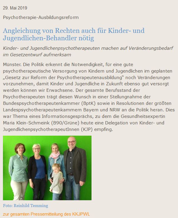 KJP kämpfen um Übergangsregelung im Ausbildungs-Reformgesetz: