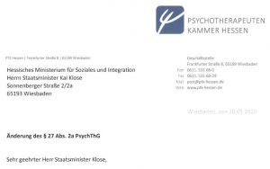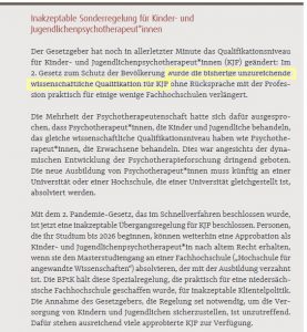 Bezieht sich auf Meldung in BPtK-Newsletter 2/2020, S. 2: