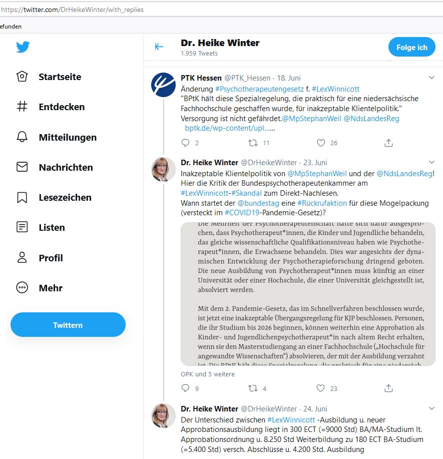 1.-Dr. Heike Winter, Päsidentin der Psychotherapeutenkammer Hessen auf Twitter: