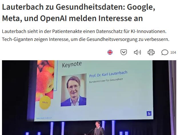 Lauterbach: Gesundheits-Datenschatz für US-Unternehmen