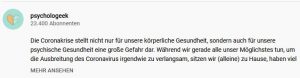 - Die Deutsche Gesellschaft für Psychologie (DGPs), Fachgruppe Klinische Psychologie und Psychotherapie, hat ein kindgerechtes Video über die möglichen psychischen Folgen des Corona-Virus für Kinder erstellt.