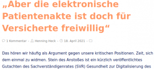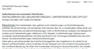 Dr. Andreas Meissner, der die Petition gegen die elektronische Patientenakte erfolgreich auf den Weg gebracht hatte, auf Youtube – ein wirklich empfehlenswerter (30min. Vortrag & 30min. Fragen) – für sämtliche BehandlerInnen, egal ob mit oder ohne TI-Anschluss und für interessierte Paitent:innen: