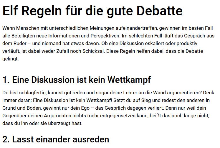 Hilfestellung für u.a. Kinder und Jugendliche für konstruktive Auseinandersetzungen